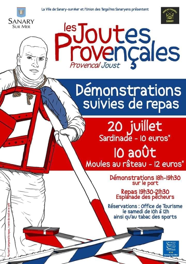 The city of Sanary/mer organizes a Provencal Joust competition followed by a local seafood meal.