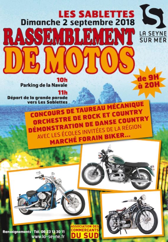 Motorbikes gathering – Les Sablettes @La Seyne EvelyneAugust 29, 2018September 15, 2018 Lifestyle and Activities in Provence Motorbikes and country celebration in Les Sablettes in La Seyne — September 2, 2018, from 9:00am Toulon, Var ← August 15th – Provence D day 82nd edition BOL D’OR @Le Castellet →
